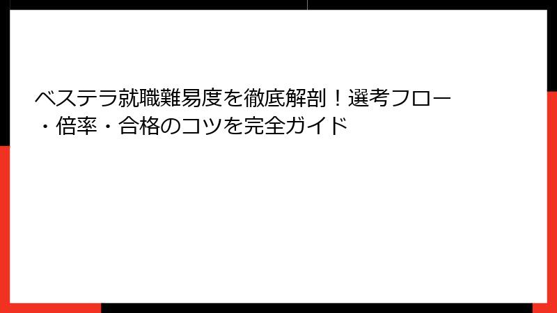 3. ベステラの就職難易度を数字で解剖!選考フロー・倍率・合格者の特徴を徹底分析