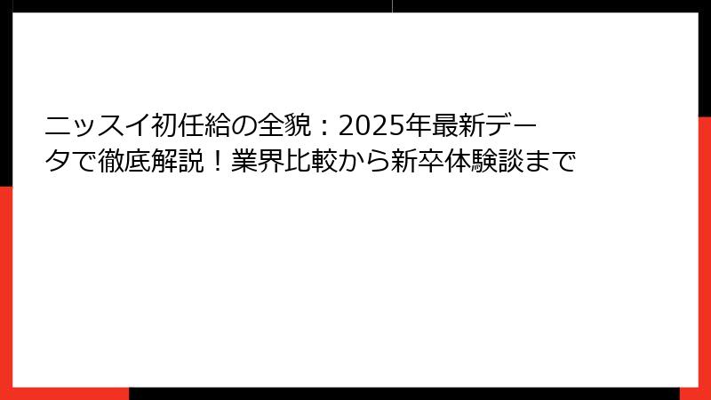 この記事では、ニッスイの初任給に関するあらゆる情報を網羅的に提供します。
