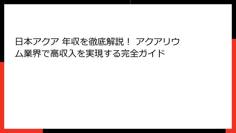 - 日本アクア 年収の未来予測と今すぐ始めるためのアクションプラン
