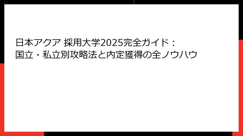 このガイドを最後まで読んだあなたは、すでに日本アクアの採用大学リストに一歩近づいています。