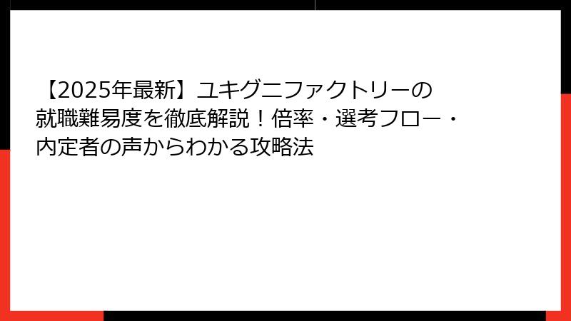 以上、ユキグニファクトリーの企業概要と就職難易度の全体像を解説しました。