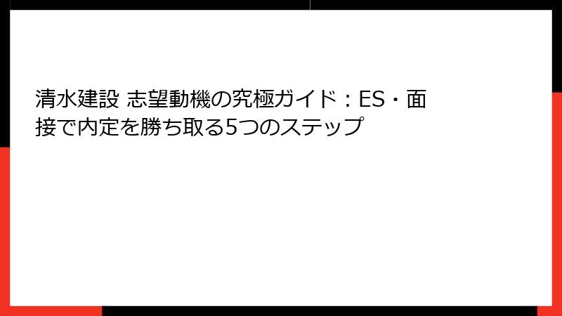 志望動機を準備する際は、単なる「憧れ」や「安定性」ではなく、清水建設の具体的な事業や価値観に紐づけた内容が不可欠です。