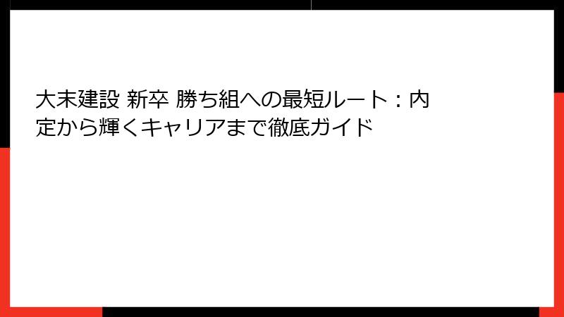 新卒で大末建設に入社したら、果たして「勝ち組」になれるのか? 就職活動中の学生にとって、企業選びは人生の大きな分岐点です。