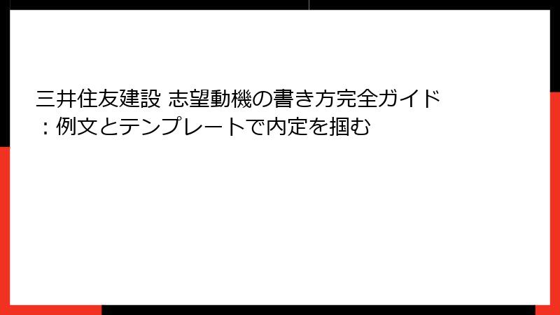 - 三井住友建設内定へのラストスパート:志望動機を武器に就活を勝ち抜け!