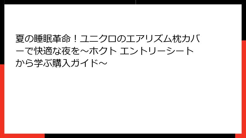 夏の睡眠革命!ユニクロのエアリズム枕カバーで快適な夜を~ホクト エントリーシートから学ぶ購入ガイド~