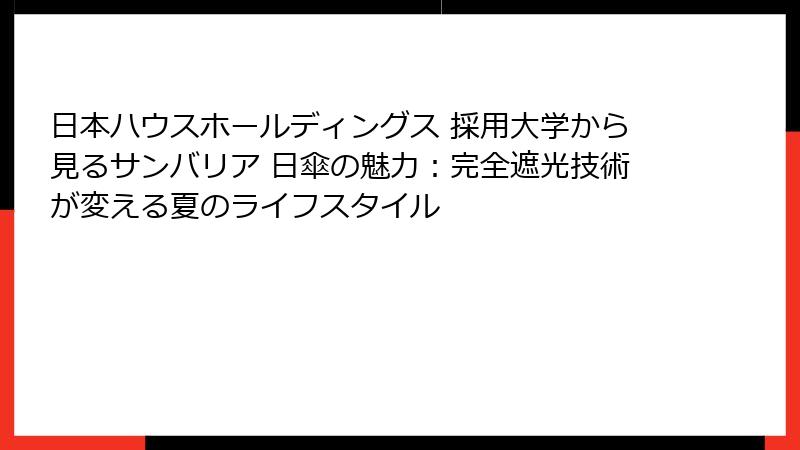 日本ハウスホールディングス 採用大学から見るサンバリア 日傘の魅力:完全遮光技術が変える夏のライフスタイル