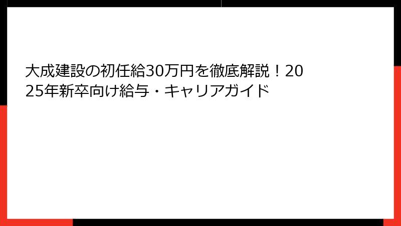 大成建設の初任給30万円を徹底解説!2025年新卒向け給与・キャリアガイド