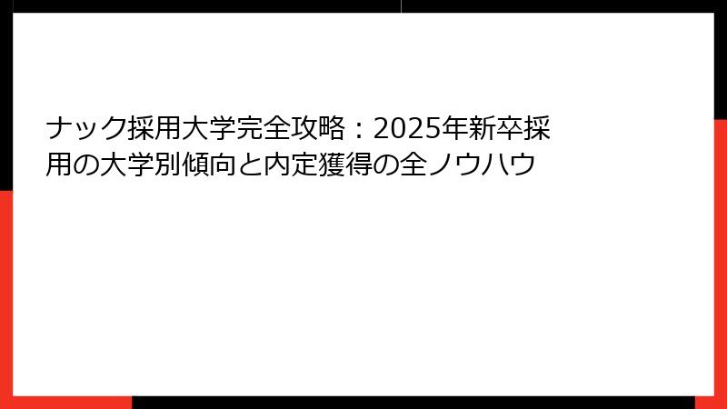 これらの戦略は、大学名に依存せず、ナックの求める人材像(技術力、協調性、革新性)に焦点を当てた準備が鍵であることを示しています。
