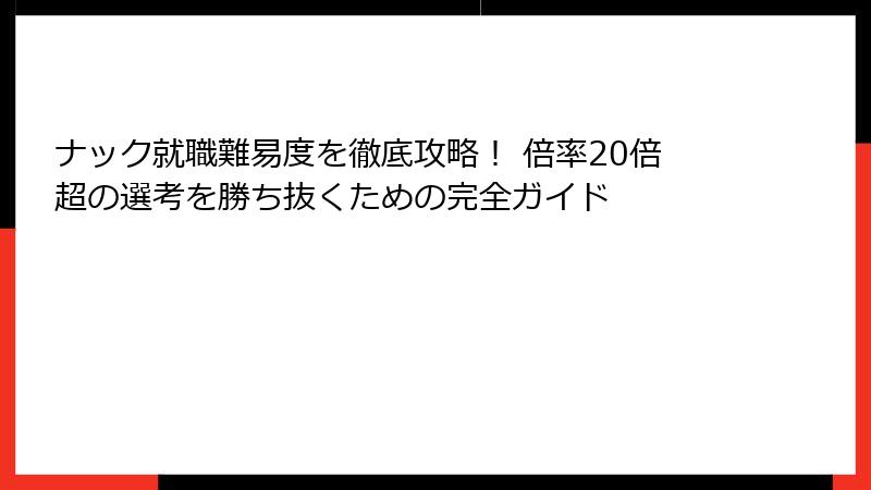 ナック就職難易度を徹底攻略! 倍率20倍超の選考を勝ち抜くための完全ガイド