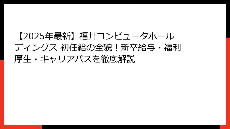 - 福井コンピュータホールディングス(FCH)の初任給事情を徹底調査!IT業界で働く魅力とは?