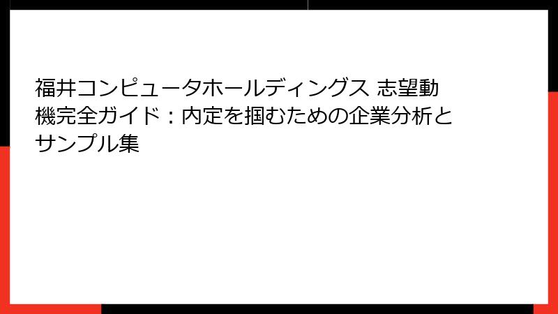 - 福井コンピュータホールディングスへの志望動機を武器に、内定を掴む就活術 ~今すぐ行動を!