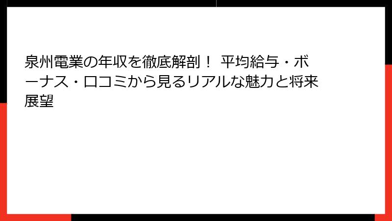 なぜ「泉州電業 年収」が注目されるのでしょうか? 転職や就職活動において、給与は生活の基盤を支える重要な要素。