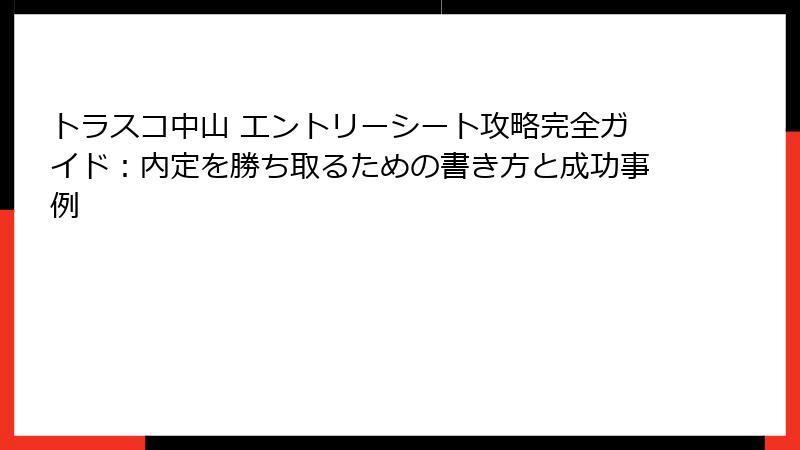トラスコ中山のエントリーシート(ES)は、採用担当者にあなたの可能性をアピールする重要な第一歩ですが、ちょっとしたミスで書類選考の通過率(推定10-20%)を逃すリスクがあります。
