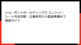ショーボンド ショーボンドホールディングス エントリーシート完全攻略:企業研究から面接準備まで徹底ガイド ショーボンドホールディングスとは?エントリーシートで差をつける就活の第一歩あなたは、「ショーボンドホールディングス エントリーシート」で検索してこの記事にたどり着いたのではないでしょうか? 社会インフラの補修・補強分野で国内トップを誇るショ... 2025.09.28 ショーボンド