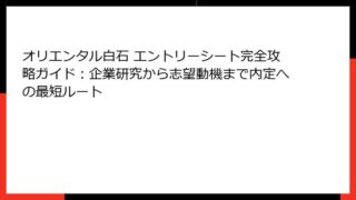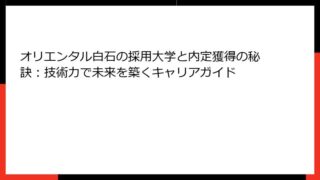 オリエンタル白石の求人人気爆発!面接攻略で内定を掴むための完全ガイドオリエンタル白石(株式会社オリエンタル白石)は、福岡を拠点にホテルやレストラン事業を展開する老舗企業として、安定性と成長性を兼ね備えた職場として注目を集めています。2025...