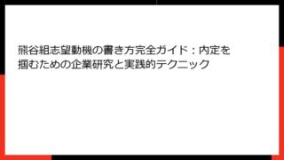 熊谷組のエントリーシート(ES)で差をつける!就活の第一歩を踏み出すための完全ガイドあなたは、建設業界のリーディングカンパニーである熊谷組のエントリーシート(ES)に挑戦しようとしている就活生ですか? 東京スカイツリーや新国立競技場のような...