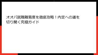 オオバの面接攻略完全ガイド:内定を掴むための必須ステップを徹底解説あなたは今、株式会社オオバの面接を控えてドキドキしていませんか?「オオバ 面接 攻略」と検索したあなたなら、求人広告業界の大手企業であるオオバの厳しい選考を突破し、内定を勝ち...