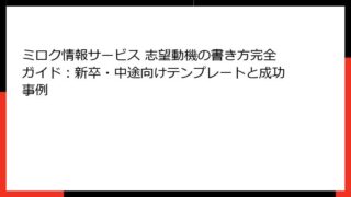 ミロク情報サービスとは?会計ITのトップランナー企業を徹底解剖ミロク情報サービス(以下、MJS)は、日本の会計・経営情報システムの分野で圧倒的な存在感を誇る企業であり、面接を攻略するためには、この企業の本質を深く理解することが不可欠です。1...