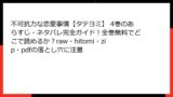 - ダウンロードの違法性: zip/pdfファイルを開くだけで複製行為となり、罰則対象。たとえ1話だけでも、複数パネルで数万円の罰金が積み重なる可能性。