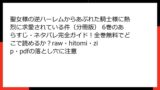 | zip / pdf形式のダウンロードサイト | 圧縮ファイルで全巻提供、Torrent経由も | ファイル開封時のマルウェア感染、個人情報漏洩 |