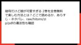 - マルウェア感染:海賊版サイトには、ウイルスやランサムウェアが埋め込まれている場合があります。『ヒマチの嬢王』のpdfやzipをダウンロードすると、デバイスが乗っ取られたり、データが暗号化されて身代金を要求されたりする恐れが。