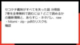 | ファイル共有型 | zipやpdf形式で漫画をダウンロード可能。違法アップロードが多い。 | hitomi、torrent系サイト |