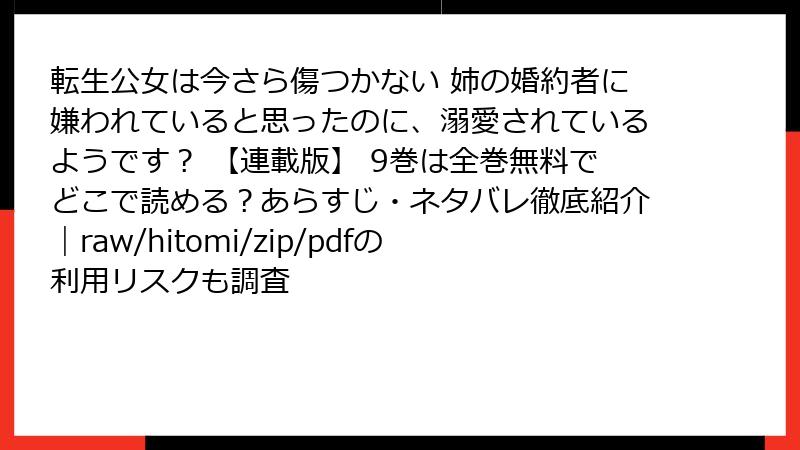 - 『転生公女は今さら傷つかない 姉の婚約者に嫌われていると思ったのに、溺愛されているようです? 【連載版】』を海賊版サイトで読むリスクを徹底解説