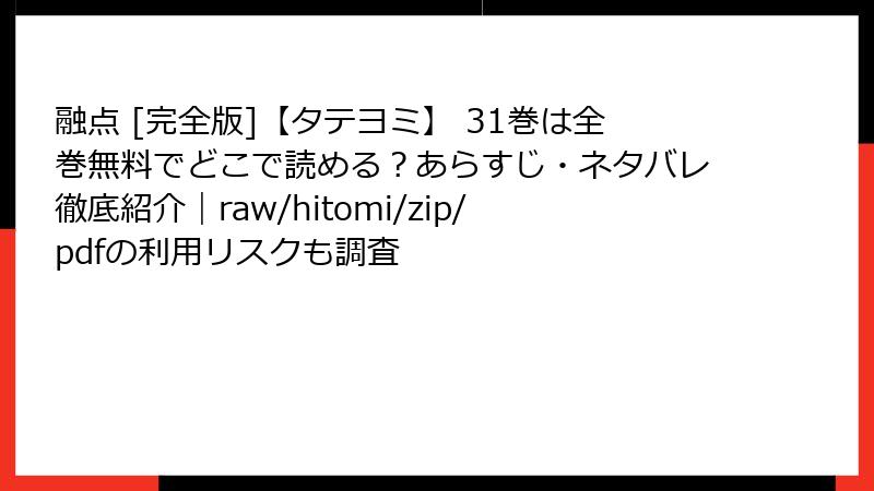 こんにちは、漫画ファンのみなさん! 『融点 [完全版]【タテヨミ】』は、激しい恋愛とドラマチックな展開で多くの読者を魅了する大人気TLコミックです。しかし、無料で読めるという誘惑から、raw、hitomi、zip、pdf、漫画バンクなどの海賊版サイトを利用しようと考えている方もいるかもしれません。今回は、これらの海賊版サイトで『融点』を読むことの重大なリスクを、法的・技術的・倫理的な観点から詳しく解説します。単なる「無料」の裏に潜む危険を知り、好きな作品を安全に楽しむための知識を深めましょう。この記事はネタバレなしで、ブログ形式で読みやすくお届けします。さっそく、見ていきましょう!