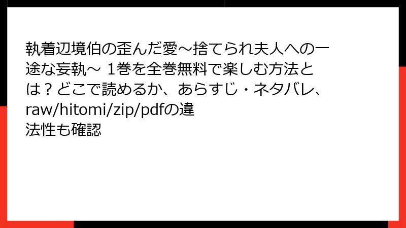 執着辺境伯の歪んだ愛~捨てられ夫人への一途な妄執~ 1巻を全巻無料で楽しむ方法とは?どこで読めるか、あらすじ・ネタバレ、raw/hitomi/zip/pdfの違法性も確認