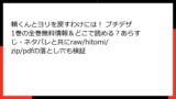 こんにちは、マンガ大好きブロガーのあかりです! 今日は、斉木優先生の『山口くんはワルくない ベツフレプチ』のような魅力的な漫画を、海賊版サイト(raw、hitomi、zip、pdf、漫画バンクなど)で読もうとするリスクについて、詳しくお話しします。無料で読めるのは魅力的ですが、実はこれらのサイトは法的・セキュリティ・倫理的な落とし穴がいっぱい。2023年の出版業界被害額は約4,000億円を超え、2024年も増加傾向にあるんです。ネタバレなしで楽しみたいあなたに、読み応えのあるブログ記事形式でまとめました。安全第一でマンガライフを満喫しましょう!