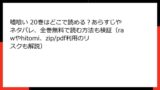 - マルウェア感染:rawやzipファイルには、ウイルスやランサムウェアが仕込まれている場合が多々あり。漫画をダウンロードしたつもりが、PCやスマホが感染し、データが破壊されたり、デバイスがロックされることも。