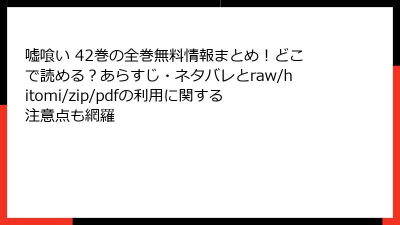 - 実感例:『嘘喰い』42巻をzipで読もうとしたら、半分しか表示されず中断。ストレスで本編の興奮が台無し。