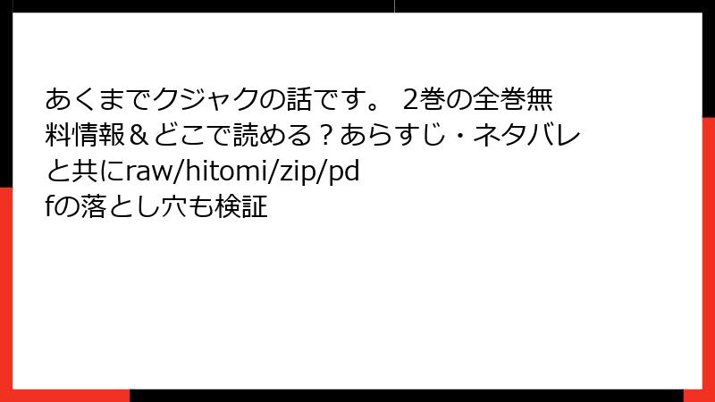 raw/hitomi/zip/pdf/漫画バンクなどの海賊版サイトは、法的罰金、マルウェア感染、倫理的後悔の三重苦。2025年の今、取り締まり強化で「後悔の連続」が増えています。無料の誘惑に負けず、正規サービスを選べば、リスクゼロで『あくまでクジャクの話です。』の深みを堪能可能。漫画ライフを豊かにするため、今日から行動を! 皆さんの体験談やおすすめサービス、コメントでシェアしてくださいね。次回は、3巻の考察をお届けします。お楽しみに♪