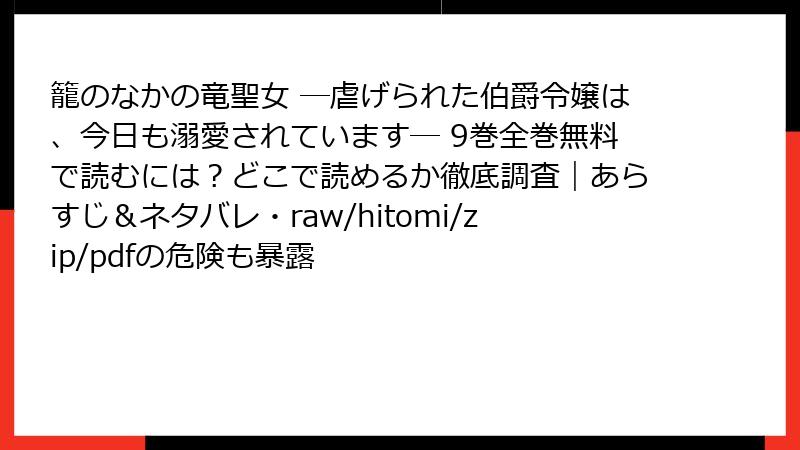 こんにちは、マンガ愛好家の皆さん! 『籠のなかの竜聖女 ―虐げられた伯爵令嬢は、今日も溺愛されています―』は、氷室亮さん原作、屋月トム伽さん作画による大人気の異世界ファンタジーコミックです。この作品の魅力に引き込まれ、つい無料で読める方法を探したくなる気持ちもわかります。しかし、raw、hitomi、zip、pdf、漫画バンクなどの海賊版サイトを利用することは、重大なリスクを伴います。この記事では、こうしたサイトで『籠のなかの竜聖女』を読むことの危険性を、法律、倫理、技術的な観点から詳しく解説します。単行本やデジタル版を正規で楽しむ前に、ぜひこのリスクを知っておきましょう。以下、