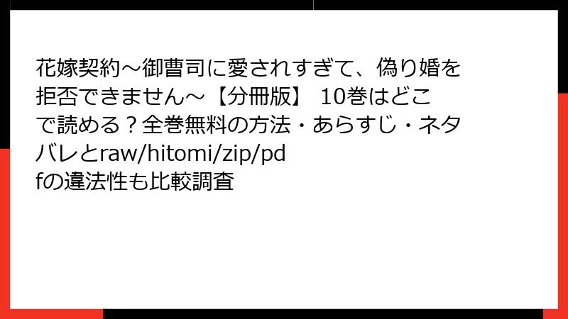 - 『花嫁契約~御曹司に愛されすぎて、偽り婚を拒否できません~【分冊版】』を海賊版サイトで読むリスクを徹底解説!安全に楽しむために知っておくべきこと