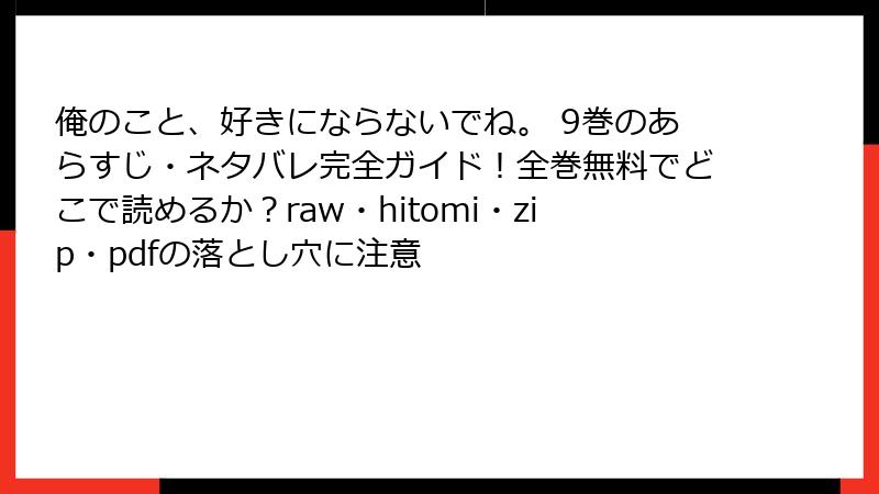 『俺のこと、好きにならないでね。』9巻は、愛都美と塁の関係が大きく動き出す感動の巻。そんな素晴らしい作品を、海賊版サイトで読むのはリスクだらけ。法的トラブル、ウイルス感染、個人情報漏洩、さらには漫画業界へのダメージと、デメリットが多すぎます。好きな作品を長く楽しむためにも、正規の購入やサービスを利用して、シリ崎先生を応援しましょう!