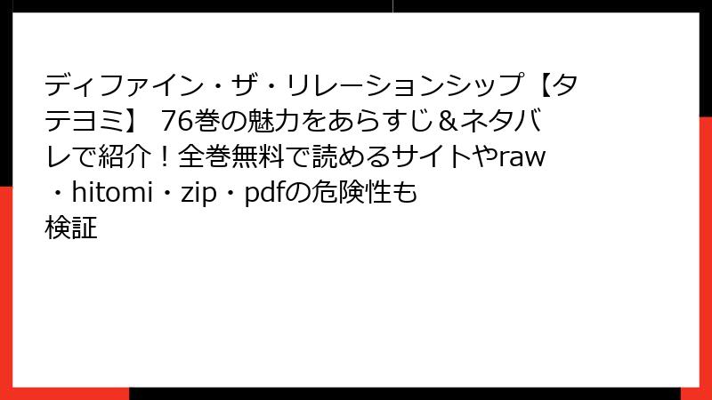 ディファイン・ザ・リレーションシップ【タテヨミ】 76巻の魅力をあらすじ&ネタバレで紹介!全巻無料で読めるサイトやraw・hitomi・zip・pdfの危険性も検証