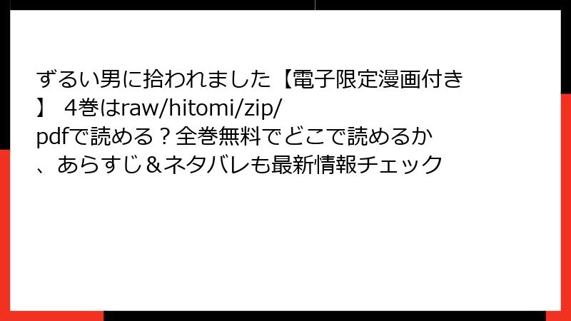 ずるい男に拾われました【電子限定漫画付き】 4巻はraw/hitomi/zip/pdfで読める?全巻無料でどこで読めるか、あらすじ&ネタバレも最新情報チェック