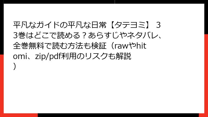 こんにちは、漫画ブロガーのミキです! 人気BLウェブトゥーン「平凡なガイドの平凡な日常【タテヨミ】」のような魅力的な作品を、無料で読みたい気持ちはわかります。でも、raw、hitomi、zip、pdf、漫画バンクなどの海賊版サイトに手を出していませんか? 2025年現在、これらのサイトは一見便利に見えますが、法的・セキュリティ・倫理的な落とし穴が満載。軽い好奇心でアクセスすると、取り返しのつかないトラブルに巻き込まれる可能性大です。この記事では、そんなリスクを徹底的に掘り下げます。未読の皆さん、警告としてお読みください! 読み応えのある