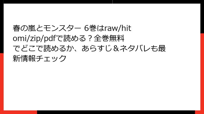 - 正規電子書籍を利用:ピッコマ、ebookjapan、BookLiveなどで、初回70%OFFや無料エピソード満載。『春の嵐とモンスター』も公式で楽しめます。