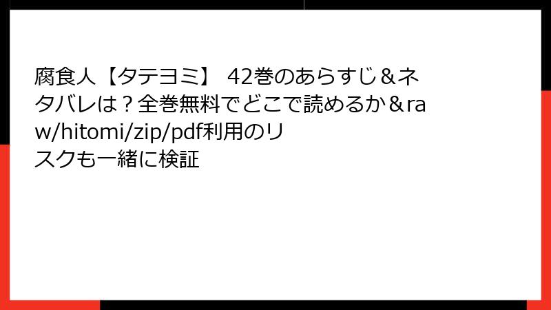 - SNSの話題性:Xで「#腐食人42巻」がトレンド入り、ファンアートや考察スレッドが活発。