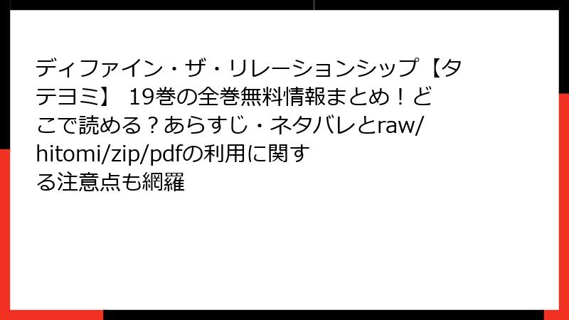 『ディファイン・ザ・リレーションシップ【タテヨミ】』19巻のレビュー・口コミ・評判を徹底解説!
