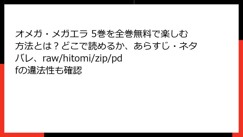 こんにちは、漫画愛好家の皆さん! 今日は、ちょっと深刻なトピックをお届けします。『オメガ・メガエラ』のような魅力的なオメガバース作品を無料で読みたい気持ち、わかります。でも、raw、hitomi、zip、pdf、漫画バンクなどの海賊版サイトを利用するのは、想像以上のリスクを伴います。この記事では、そんなサイトの危険性を、法的・セキュリティ・倫理的・実用的側面から詳しく掘り下げます。ネタバレなしで、読み応えのある解説を心がけました。さっそく、