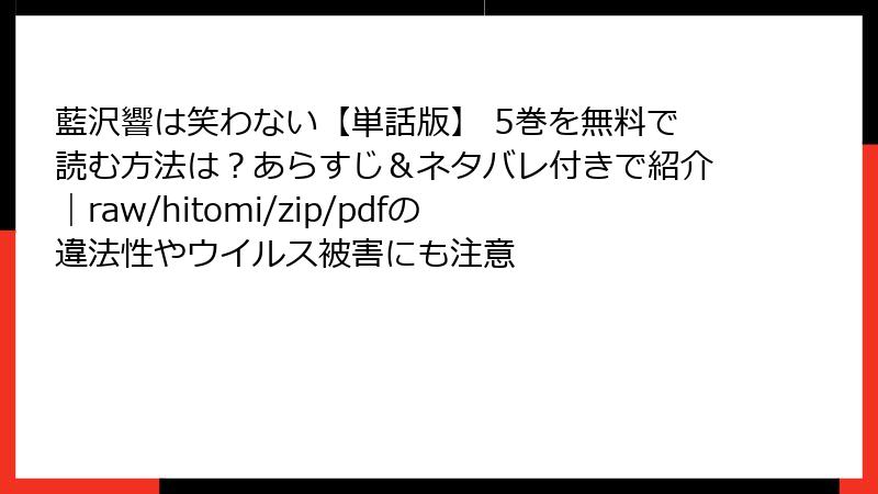 『藍沢響は笑わない【単話版】』5巻は、ホラーとロマンスの融合でファンを魅了しつつ、ホラー強度や展開のテンポで賛否両論を呼ぶ一冊。Xやレビューサイトの声からは、恐怖とキュンの両方を求める読者に刺さる作品であることが伝わります。ホラー耐性があるなら、この巻のゾクゾク感と心温まる絆の進展は必見! 皆さんの感想や推しキャラもぜひ教えてくださいね。次巻の展開も楽しみながら、正規プラットフォームで安全に読み進めましょう♪