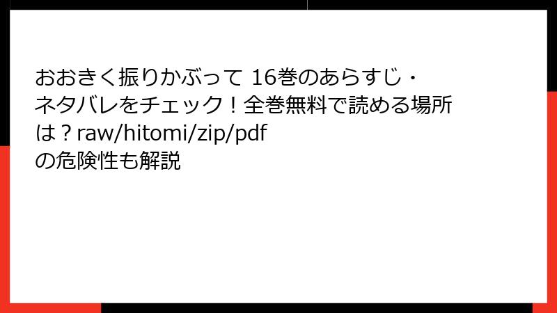 人気の高校野球漫画『おおきく振りかぶって』を、raw、hitomi、zip、pdf、漫画バンクなどの海賊版サイトで読もうとするのは、決して賢い選択ではありません。これらのサイトは、著作権者の許可なく作品を違法にアップロード・配布するもので、利用者はさまざまな深刻なリスクにさらされます。法的罰則からデバイス感染、個人情報の流出まで、無料の誘惑の裏側に潜む危険を詳しく解説します。この記事では、ブログ形式でリスクを多角的に掘り下げ、なぜ正規ルートを選ぶべきかを読み応えある内容でお届け。海賊版利用は、クリエイターの努力を無視する行為でもあり、業界全体の衰退を招く要因です。まずはリスクを理解し、安全な楽しみ方を考えてみましょう。