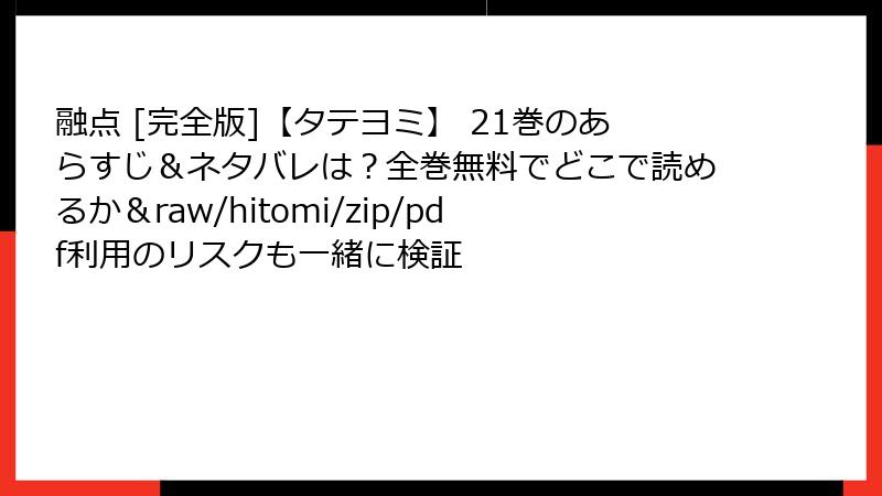 『融点』の21巻は、感情の爆発とサスペンスの頂点を描いた名作です。その感動をフルに味わうためにも、公式の電子書籍プラットフォームやアプリを利用し、クリエイターを応援しましょう。海賊版の誘惑に負けず、安全で倫理的な選択をすることが、ファンとしての誇りにつながります。