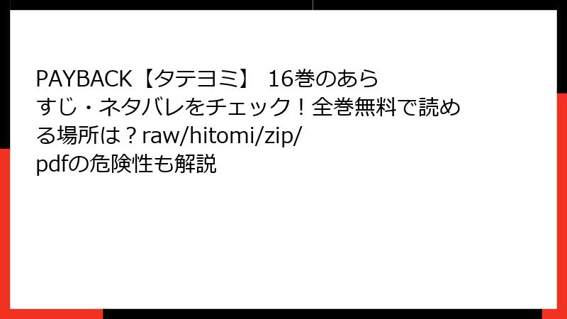 いかがでしたか?「PAYBACK【タテヨミ】」16巻は、ネタバレ満載の濃厚な展開で、読後感がすごい!読み終わった方は、ぜひコメントで感想をシェアしてくださいね。次巻の展開を一緒に予想しながら、楽しみに待ちましょう!