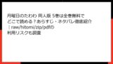 法改正の影響 | 2025年、海賊版被害額6,000億円超で厳罰化。個人警告メールが急増。 | 行政処分(利用停止勧告) | CODAのブロッキングで、raw系サイトアクセスがブロックされるケース多発。 |