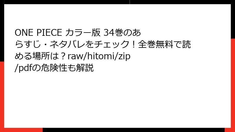ONE PIECE カラー版 34巻:電子書籍版の配信サービス完全ガイド