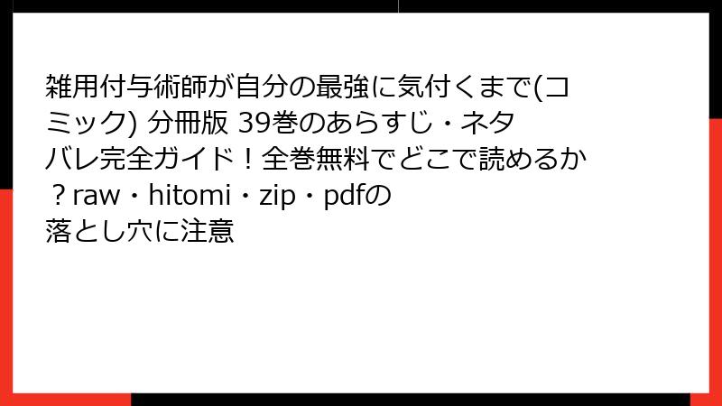 『雑用付与術師が自分の最強に気付くまで』の分冊版39巻は、主人公ヴィム=シュトラウスの成長と新たな試練が描かれる、シリーズ中盤の重要なターニングポイントです。この異世界ファンタジー漫画は、追放されたサポート役の付与術師が自身の無限の可能性に気付き、仲間と共に逆境を切り開く爽快なストーリーで人気を博しています。39巻では、ダンジョン探索、裏組織の暗躍、そしてヴィムの力の秘密が少しずつ明らかになる展開が目白押し。本記事では、ネタバレをふんだんに含みつつ、39巻の核心的な出来事、キャラクターの動向、物語の伏線を詳細に解説します。未読の方はネタバレにご注意ください! 以下の内容は、物語の驚きを最大限に味わいたい読者のために、詳細かつ構造的に整理してお届けします。